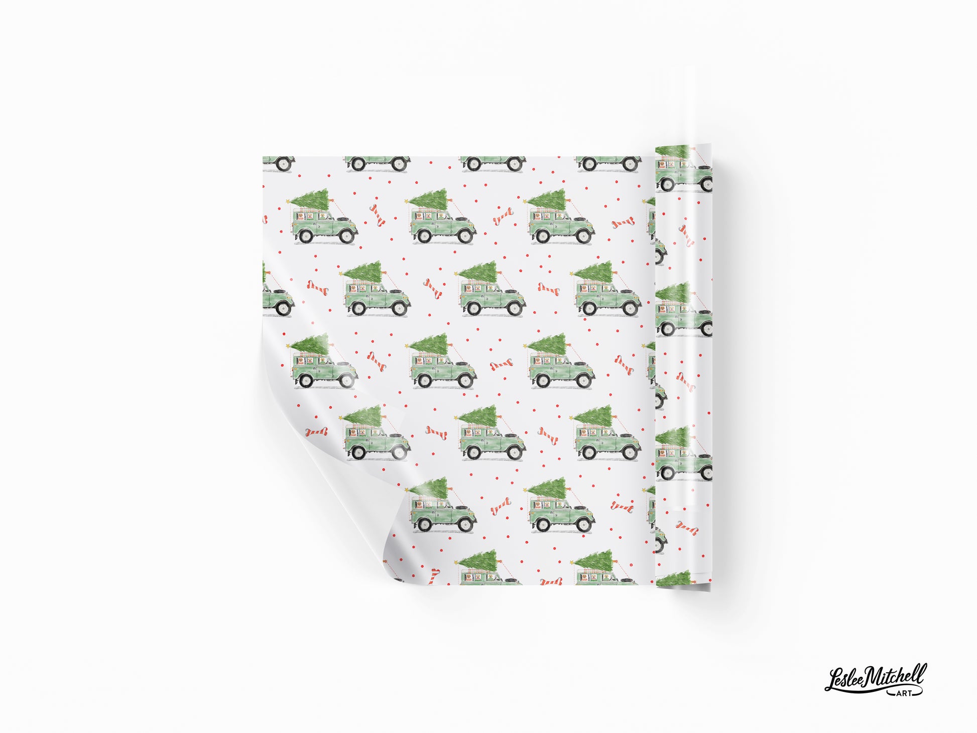Dress up your Christmas gifts and projects with our new uniquely designed gift wrapping sheets! Leslee photographed real toy cars with a miniature Christmas tree on the roof to create this one of a kind Christmas gift wrap sold exclusively by Leslee Mitchell Art.