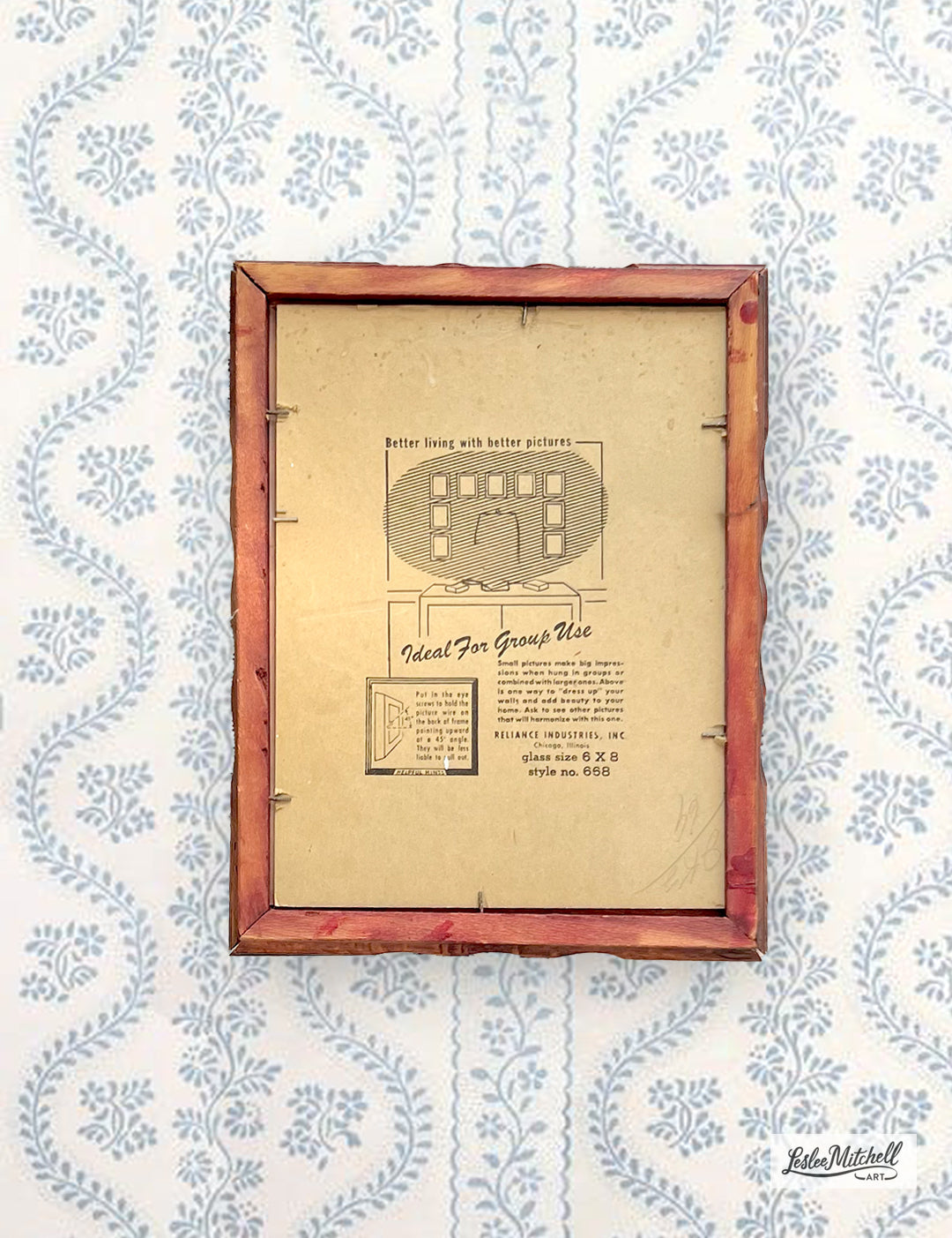 Framed behind glass in antique wood frame with scalloped edges. Frame interior measuring 7.75 x 5.75 inches with overall frame size measuring 9.25 x 7.25 inches. Ready to hang. Perfect for a living room, office, or serene bedroom.